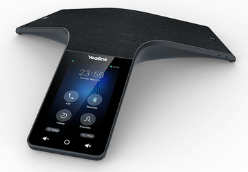 This tri-pod style phones supports an Android 9.0 OS, a 5" touch screen, Noise Filtering, a 20-foot microphone range, 10-way conference calling capability and has built in Bluetooth capability.